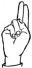 На ћирилици написано АНДРЕА ЈОВЕЉИЋ састоји се из 13 слова [?]. Исписано ћириличном једноручном азбуком за глувонеме: